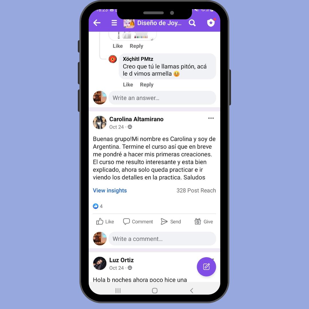 Tenemos un grupo de Facebook exclusivo para alumnas de este curso, donde diariamente estamos interactuando, así como mostrando los increíbles resultados de cada una. Dentro del curso tendrás el enlace de acceso y ahí estaré a disposición para aclarar dudas de aspectos del curso que por alguna razón no logres entender o si tienes algún inconveniente para el cual necesitas mi ayuda.